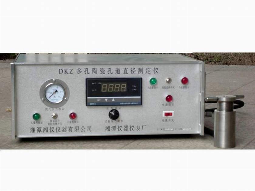 DKZ多孔陶瓷孔道直徑測(cè)定儀適用于按GB/T1967-1996《多孔陶瓷孔道直徑試驗(yàn)方法》測(cè)定多孔陶瓷毛細(xì)孔管道最大值。本儀器主要由供氣瓶、電器控制箱及試樣夾具三部分組成,采用精密低量程數(shù)字測(cè)壓系統(tǒng),精確測(cè)量試驗(yàn)壓力值。試驗(yàn)用氣體為壓縮空氣或氮?dú)?;試樣夾具適用于截面為圓柱形的試樣,夾具保證了在試驗(yàn)過(guò)程中氣體只能從試樣毛細(xì)孔中通過(guò)而不至于從試樣邊緣泄露。
